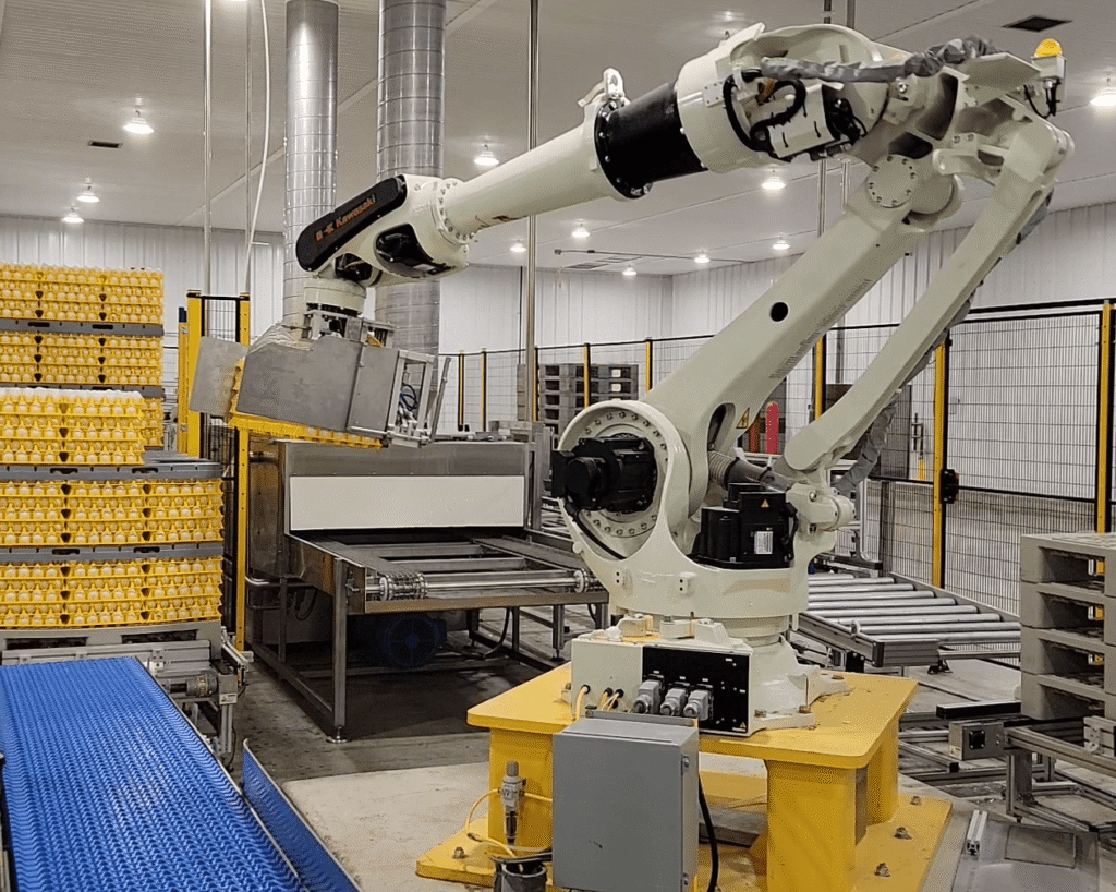 Case packing applications in these egg farms is where SynerTech is focusing next. Designs and concepts are already in the works for custom robot case packers.